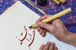 خوشنویسی تا پیش از اختراع صنعت چاپ از هنرهای پراهمیت تاریخ هنر بوده است البته در زمان حاضر نیز هنوز جزو هنرهای خاص و اصیل ایرانی است. قبل از اسلام خطوط مختلفى از جمله میخى و پهلوى و اوستائى در ایران متداول بوده است، با ظهور دین اسلام نیاکان ما الفبا و خطوط اسلامى را پذیرا شدند. خط متداول آن زمان که نزدیک دو قرن قبل از اسلام شکل گرفته بود خط کوفى و نسخ قدیم بود که از دو خط قبطى و سریانى در اوایل قرن چهارم سال 310 هجرى قمرى ابن مقله بیضاوى شیرازى خطوطى را بوجود آورد که به خطوط اصول معروف شد که عبارتند از محقق- ریحان – ثلث – نسخ – رقاع و توقیع که وجه تمایز آنها اختلاف در شکل حروف و کلمات و نسبت سطح و دور در هر کدام مى باشد و براى این خطوط قواعدى وضع کرد و 12 اصل نوشت : ترکیب- کرسى- نسبت- ضعف- قوت- سطح- دور- صعود مجازى- نزول مجازى- اصول- صفا و شأن.